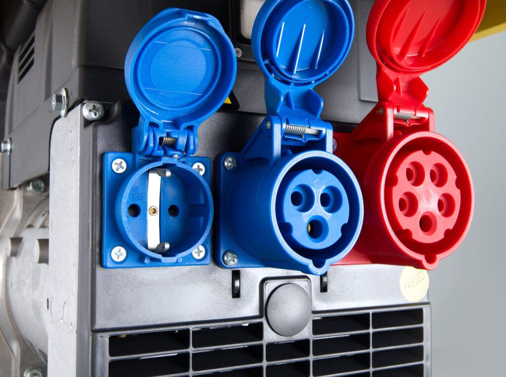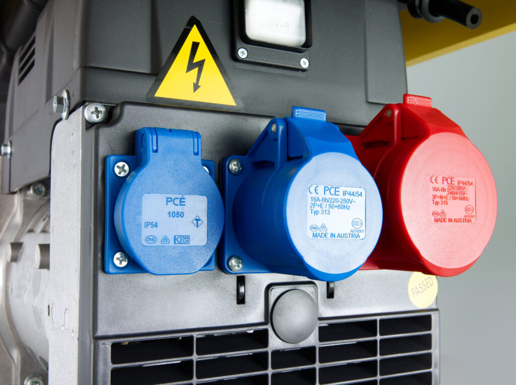 1x Schuko 230V,16A; 1x 1∼CEE 3P, 230V, 16A; 1x 3∼CEE 4P, 400V, 16  |